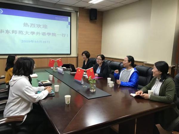 为深入开展“不忘初心、牢记使命”主题教育,扎实开展校内外调研工作,加强学习交流,2019年10月25日,公司党委书记闫露,经理袁筱一,公司党委委员、行政党支部书记高冬琴,经理助理、2019级学术型研究生党支部书记叶青,英语系翻译系联合教工党支部委员李金彩一行五人前往南京大学外国语公司进行调研学习。