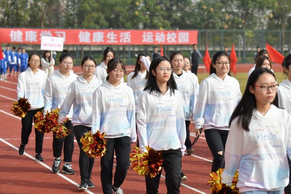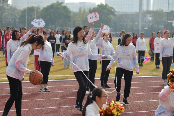 为了这次校运会,永利yl23411师生进行了精心准备,从服装到道具,从队形到口号,从报名到选拔,无一不体现了外院人奋发向上、热情洋溢的精神面貌。本次入场式的服装由同学自主设计,印有7种语言的“你好”,生动表达了永利yl23411的多语种特色,多彩的颜色象征着各种语言文化,卫衣整体设计新潮时尚,散发出青春的活力。