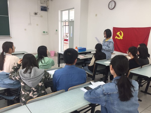 宣誓结束后,大家戴着崭新的党徽,开始学习习近平总书记在进博会上的重要讲话。讲话中所传递的重要思想让大家都感受颇深。“共建创新包容的开放型世界经济”是习总书记讲话的主旨。对此,谷佳雨同学表示:“进博会是迄今为止世界上第一个以进口为主题的国家级展会,是中国着眼于推动新一轮高水平对外开放,主动向世界开放的重大决策,这体现了一个大国的自信和担当。当今世界正经历新一轮大发展大变革大调整,中国在这一历史机遇和挑战面前选择主动开放合作,正是党在建设和实践中的慎重选择。” 吴悦雯同学说道:“中国是一个有着13亿人口的大国,在物资人力方面有着得天独厚的优势,随着新一代纳米技术、新能源开发等新技术的发展,维护自由贸易,扩大开放,跨越国境线,实现国家与国家、企业与企业的合作,不仅有利中国的经济发展,更是为世界经济锦上添花。”王梦昀则认为:“开放带来进步,而封闭必然导致落后。国际贸易和投资等经贸往来,植根于各国优势互补、互通有无的需要。若各国削减壁垒,扩大开放,相信国际经贸必能打通血脉,健康发展。”