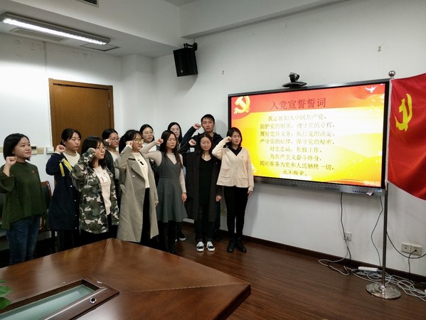 2018年11月12日下午,本科生联合党支部全体成员在公司会议室进行了入党宣誓。在支部书记高勇的带领下,支部全体成员面对着鲜艳的党旗,郑重地举起右手,庄严宣誓:“我志愿加入中国共产党,拥护党的纲领,遵守党的章程,履行党员义务,执行党的决定,严守党的纪律,保守党的秘密,对党忠诚,积极工作,为共产主义奋斗终身,随时准备为党和人民牺牲一切,永不叛党。” 通过宣誓,同志们再一次坚定了自己的共产主义信念,明确了作为一名共产党员的历史使命与责任。