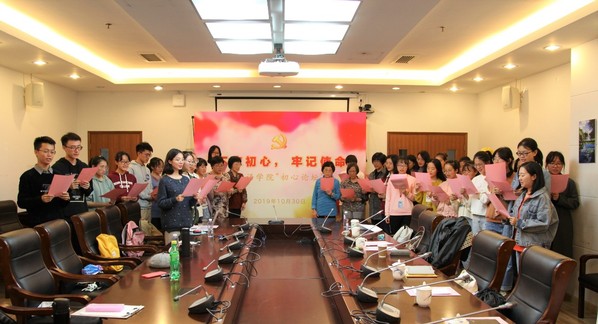 为深入开展“不忘初心、牢记使命”主题教育,努力推动师德养成教育,提高师范生培养质量,践行“求实创造,为人师表”的校训精神。永利yl23411于2019年10月30日下午在中北校区理科大楼A207室举办“不忘初心,牢记使命”初心论坛。活动邀请公司关工委蒋范琛、杨珠樨、何慧敏、黄惠芳、丁兰兰主讲,30余名提交了入党申请书的英语师范专业大一新生以及研究生党员代表出席。论坛由辅导员周俊辰主持。