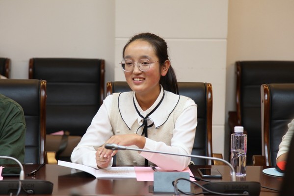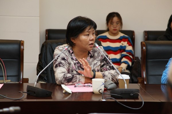 蒋范琛老师首先发言,她从三个阶段阐述了选择教师这一职业的原因。小时候的梦想和中学遇到的老师对她的影响。而华师大文工团的一次宣传演出则更加坚定了她的信念,那场讲述教师故事的短剧《荒山桃李》,那首《教师之歌》中唱着的“这就是我一生的幸福,这就是我劳动的结晶,我是人类灵魂的工程师,我是世界上最幸福的人”,这些都深深地触动着她,也因此坚定了她之后要选择当一名老师的信念。