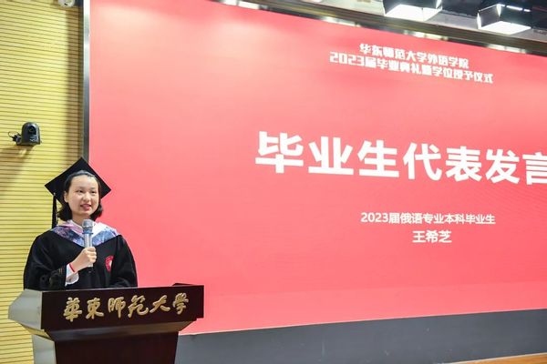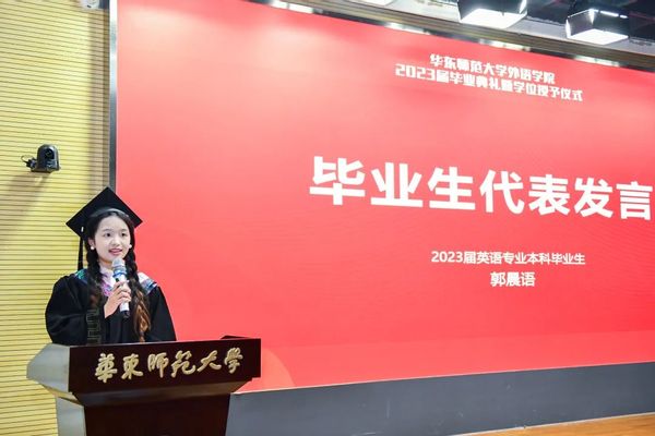 在庄严的国歌声后,毕业典礼正式开始。永利yl23411经理杨延宁在致辞中表达了对毕业生的美好祝愿,并分享了外语人在新社会环境下所拥有的三个独特之处:外语人能够更好地把握现代文明;外语人能够更加温柔地对待这个世界;外语人拥有知难而上、百折不回的强大力量。