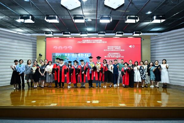 现场还举行了毕业生学位授予仪式,在场教师为毕业生们颁发学历学位证书并合影留念。