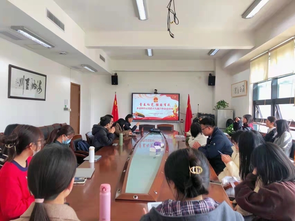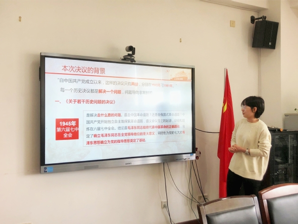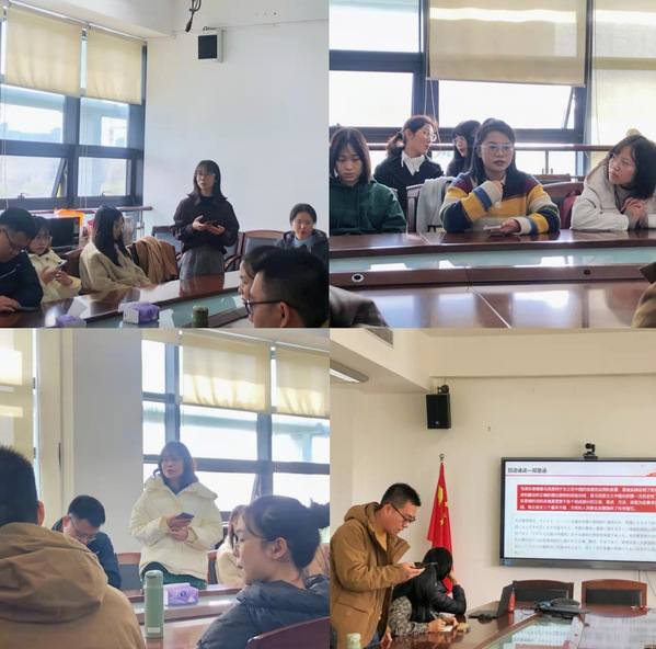 党支部书记金晶肯定了大家的学习精神,她指出,要将学习贯彻党的十九届六中全会精神作为支部建设的重要内容,各位党员同志要卯足学习劲头,不断提高理论素养,将成为一名拥有坚定政治定力、娴熟语言能力和扎实学科素养的杰出外语人作为奋进目标。