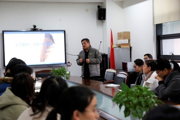 2018年12月14日下午,在永利yl23411319会议室举办了题为“文学翻译与再创作”的学术讲座。讲座由俄语系教师巴禹心老师主持,黑龙江大学高翻公司副经理、黑龙江大学俄语公司白文昌教授主讲。白文昌教授在文学翻译领域有着丰富的经验与独特的见解。同学们认真聆听教授的讲解,并积极互动,收获颇丰。
