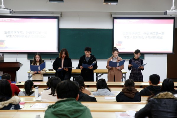案例教学展示环节,同学们以小组为单位进行主题沙龙、社会实践情况汇报,围绕“基因编辑婴儿”、“偶像效应”、“进博会”、“改革开放40周年”等社会时政热点问题,通过具体案例、数据进行观点陈述,并展开激烈讨论。生命科学公司特邀组织员徐容老师对汇报进行总结,徐老师首先肯定了本次党校培训班的形式,认为各小组的选题十分新鲜、贴近现实,并针对每一组的展示进行点评,从一名老共产党员的角度解读社会热点问题;同时寄语同学们不仅要了解中国的现状,更要充分了解中国的历史,不断学习党章、党规,做身边同学的表率,努力向党组织靠拢。在结业仪式上,学员代表带来了《青春中国》诗朗诵,展示了学员奋发向上的风貌和对祖国的美好祝愿。随后,进行了党校结业考试。