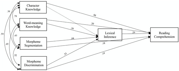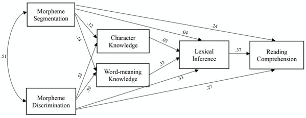 Zhang, H., Zhang, X., Li, M., & Zhang, Y. (2021). Morphological awareness in L2 Chinese reading comprehension: Testing of mediating routes. Frontiers in psychology, 12, 736933. DOI: https://doi.org/10.3389/fpsyg.2021.736933