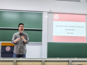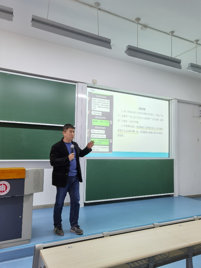 李征老师做了关于“混合式教学模式的探索与反思—以《通用学术英语听说》课程为例”的主题报告。《通用学术英语听说》课程是公司本科生公共必修课,被教育部首批认定为国家级一流本科课程(线上线下混合式一流课程)。在报告中,李老师着重介绍了本课程7年的建设过程、开课情况、选课高校、课程目标、课程设计、形成性评价体系和在线、混合式课程标准。以“跨文化交际”单元为例,李老师展示了线上、线下课程的具体教学目标与教学设计,进而对学习活动指标做了具体解读与策略介绍。最后,在课程建设反思中他特别强调“调整心态,拥抱变革,敢于尝试,包容失误,明确标准,设计先行以及客观评价、及时调整”的重要性。