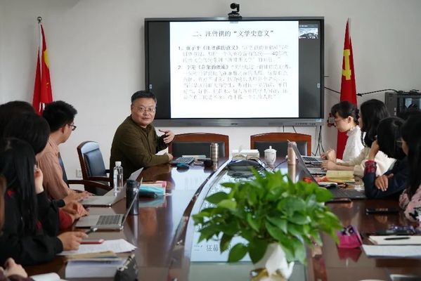 认真聆听完讲座后,在场师生们纷纷与罗教授进行互动。支部书记陈凌虹说:“我们跟随罗教授,重温了汪曾祺先生清新自然的文字,以及他笔下真实质朴乡风民情,确认了他的感怀寄托实际上是和我国当时的社会背景息息相关的。支部党员均从事‘语言文学’相关教学科研工作,罗教授的解读给我们提供了一种学习四史的新方法和新思路,让我们透过优秀的文学作品,‘触摸’到了新中国史和改革开放史,了解到文学作品中记录的祖国发展历程。”