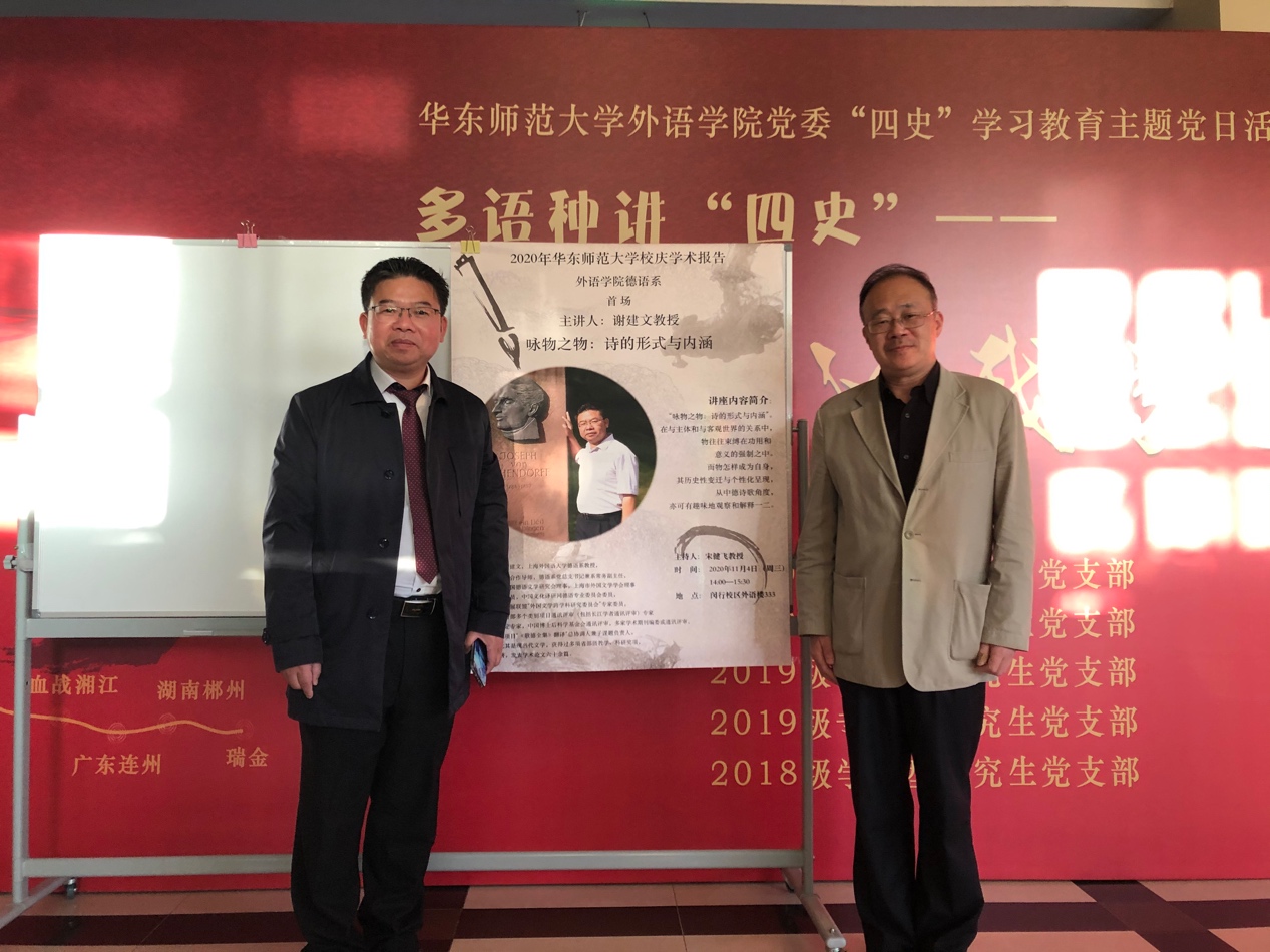 2020年11月4日下午,上海外国语大学德语系谢建文教授应德语系邀请来到永利yl23411333报告厅开展 “咏物之物:诗的形式与内涵”学术报告。报告由德语系主任宋健飞教授主持。