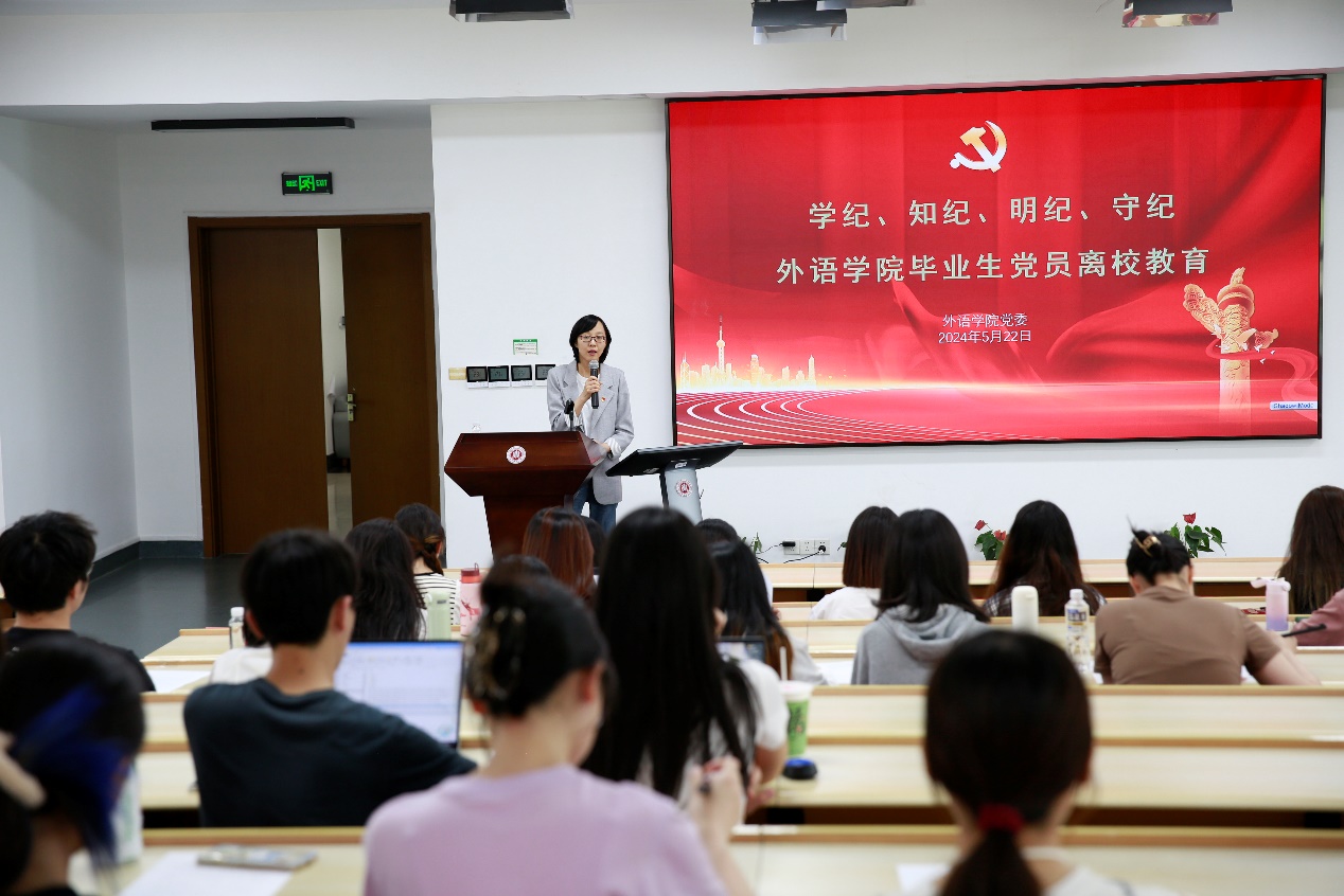 2024年5月22日下午,公司党委结合党纪学习教育安排,在外语楼333报告厅,开展以“学纪、知纪、明纪、守纪”为主题的毕业生党员离校教育,全体毕业生党员参加。公司党委副书记兼副经理江宇靖主持会议。