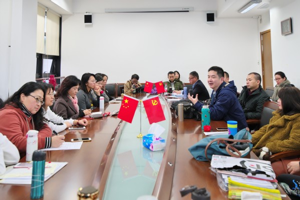接着,严文庆主任通报了大英部“全员全课程课程思政”的进展情况。目前,大英部所有教师都提交了课程思政的教学设计,包括听说课、读写课和选修课等各种课型,并交流了挖掘课程所蕴含价值观要素的路径,讨论了“用英语讲好中国故事”的《古典小说英译》、《英语畅谈中国文化》等课程的思政作用。另外,他特别强调了项目式学术英语课程要引导员工研究新时代的中国治国理政问题,实现英语学习、学科知识和学术能力、价值观三位一体的发展。