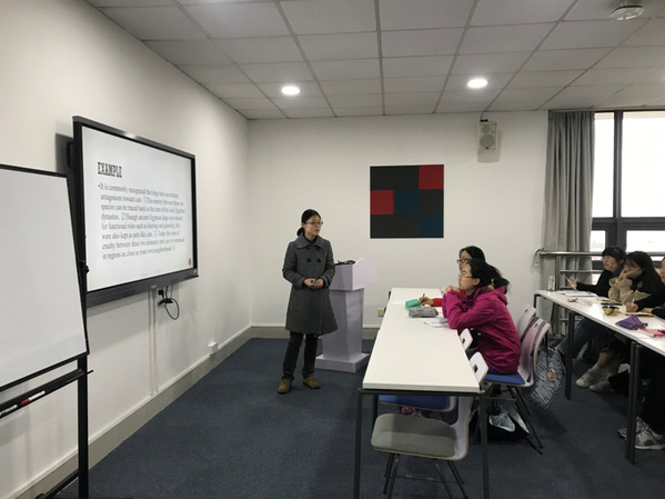 11月27日下午,应永利yl23411大学英语部邀请,复旦大学外文公司写作中心郭骅老师来到大学英语部第二课堂“英语·家”503教室,为公司英文写作坊的同学们带来了一场题为“学术写作的三大要素”的精彩讲座。英文写作坊的负责老师和写作坊全体学员参加了此次讲座。