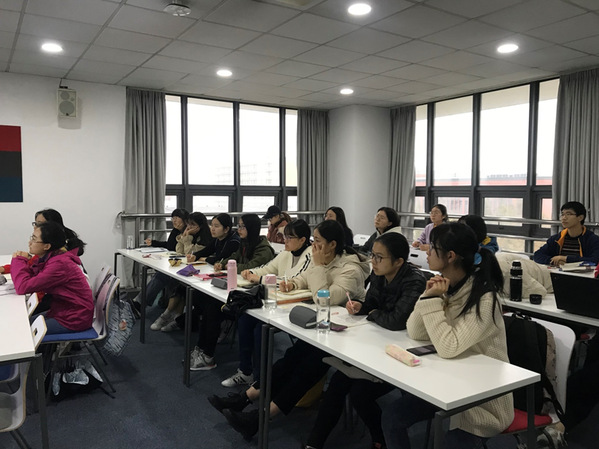 郭骅老师是复旦大学外文公司大学英语部讲师,主讲英语研究论文写作和研究生英语等课程,研究方向为语篇分析与学术写作。在讲座中,郭老师围绕着英文写作中的三大要素:统一、连贯和一致展开,通过清晰的概念讲解、丰富的实例分析,介绍了如何在内容上紧扣主旨、在风格上保持一致,以及如何在写作中运用多种衔接手段和主位推进模式,阐释了三大要素之间的逻辑关系与实现策略,使同学们对学术英语写作的策略与技巧有了更深入的认识,获益匪浅。
