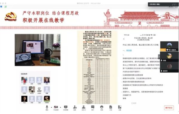 在疫情中,西班牙语教研室以团队为单位,紧密团结起来,对“全面在线教学”这一新事物开展线上会议。老师们纷纷围绕着具体课程发表了自己的看法,准备分工合作,集体备课,以饱满的精神来迎接新挑战。通过一句句习语和谚语,激发员工将不同文化、思想内涵融会贯通的能力;在援引世界经典文学形象的同时,结合《论语》、《孟子》、《道德经》等传统文化的经典思想,传承中华文化的精髓;在了解国际局势的情况下,请同学们分析探索欧盟在防疫中采取的措施,以此提高员工报刊文献阅读水平,培养国际视野。徐泉老师说,在线教学中不仅要注重知识的传授和能力的养成,更需注重培养员工正确的世界观、价值观、人生观,提升其民族自豪感和文化自信心,并有意识地训练其获得批判性思维的能力。