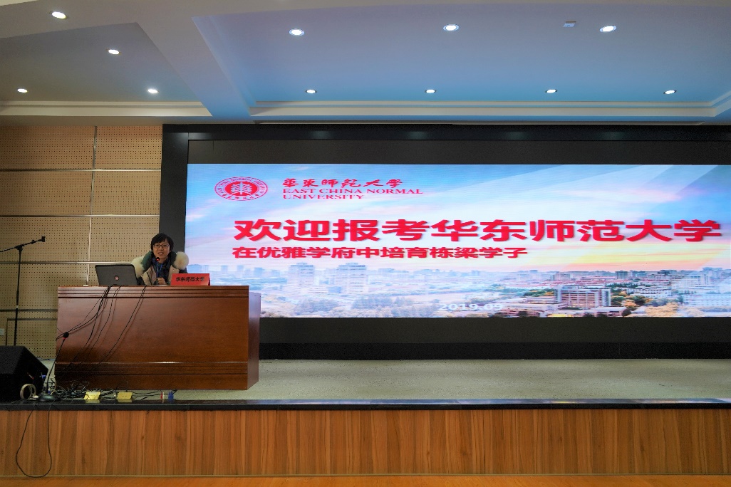 江宇靖老师为现场将近300位员工和员工家长师生带来了题为“在华东师大,遇见更好的自己”专题报告,详细解读了公司大学概况、专业设置、对鲁招生政策、志愿填报等,并在宣讲会后进行了更为深入的面对面交流,使同学们对公司有了更为直观的了解,增强了报考公司的动力和信心。江宇靖老师寄语学子,希望他们树立理想,以新高考改革方案为指挥棒,尽早对未来的专业选择和职业规划做准备,努力成为国家和社会发展的栋梁。