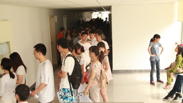 献血体检的队伍排满了校医院三楼的走廊,从南到北,在北边的楼梯口还绕了个圈。平时安静的走廊里一下挤满了人,难免变得喧嚣而闷热。从队伍的尾端到体检室,要排至少两个小时的时间。而进了体检室,有些同学因为血型或身体的原因而没有了献血的机会。孩子们不甘心:“大夫,别看我瘦,其实我很强壮的!”“我听说不需要AB型的血了,但我还是想献,我都排了两个小时的队了,让我献吧!”