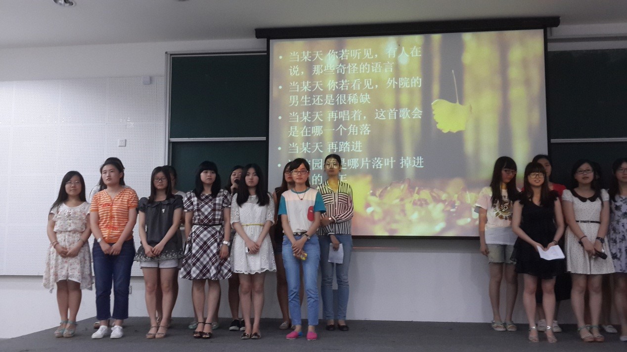 2014年6月11日晚上六点,永利yl23411英语系翻译系本科生党支部在闵行一教108报告厅举行了毕业生党员欢送会。为了给即将毕业的学长学姐留下大学最后的美好记忆,11、12、13级的同学各显其能,展示自己的才艺,将晚会的气氛逐渐推向高潮。