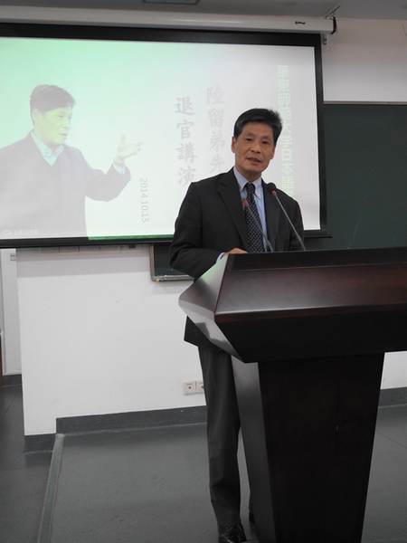 2014年10月15日(周三)下午1-3时,日语系在外语楼三层报告厅举行了陆留弟教授退休纪念演讲会。演讲会由日语系主任潘世圣老师主持,日语系教师、员工、以及部分毕业生参加了演讲会。
