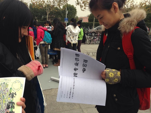 2014年12月11日正午,在这个寒风凛冽的日子,永利yl23411学术部主办的“学霸地图第三期”宣传活动在华闵食堂门口如期举行。两位部长带着干事们参加了此次活动,团学联主席邱雅莹也到现场助阵。“学霸地图第三期”旨在推广跨专业精品课程,精品公选课以及APP大全,为使此次活动宣传收到良好的宣传效果,学术部做了很多准备。