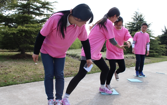 “指压板跳绳”是大多数队伍认为最“可怕”的挑战对象。各个小组带着对指压板的莫名敬畏赤脚上阵。虽然跳绳简单,但是指压板却是大家痛苦的根源。跳绳的队员哭笑不得的神情,触地后迅速弹起的双脚让围观的同学们忍俊不禁。