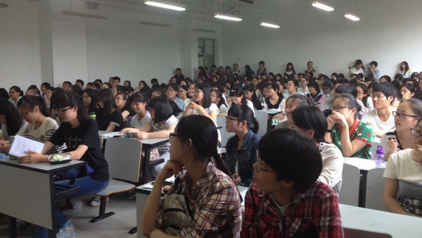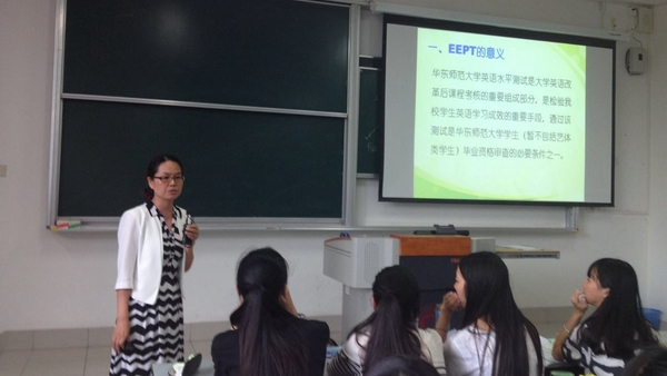 苏老师和桑老师分赴闵行和中北两个校区,在闵行校区第二教学楼108教室和中北校区文史楼301教室,为两个校区近两百位同学同步带来了一场内容全面、数据详实、针对性强的讲座。他们首先介绍了永利yl23411英语水平测试理念、特点和口、笔试题型。随后,结合2014年度首次英语水平测试成绩数据分析,两位教师就听力、阅读、写作、翻译和口语分别提供了具体、可行的备考策略与建议。会后,两位教师继续与部分员工进行了持久、深入的探讨与交流。
