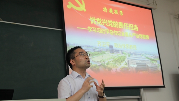 本次党员大会邀请政治学系原系主任齐卫平教授作了题为《忧党兴党的责任担当——学习习近平总书记全面从严治党思想》的报告。报告从党的十八大以来全面从严治党的新局面、习近平总书记全面从严治党的主要思想、习近平总书记全面从严治党的基本特点等三个方面为大家详细解读了习近平总书记一系列重要讲话精神,重点解读了习近平总书记全面从严治党的十点主要思想,使全体党员都接受了一次很好的理论教育,增强了爱党情怀、坚定了政治信念和为公司发展而贡献力量的决心。