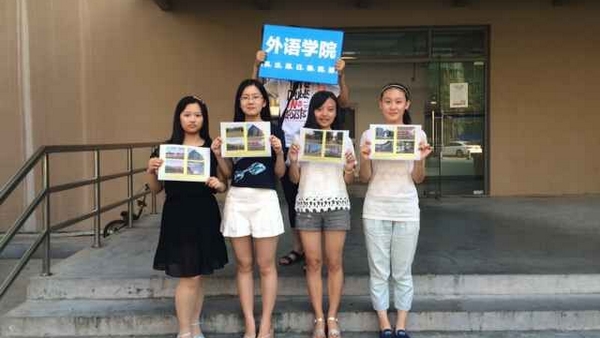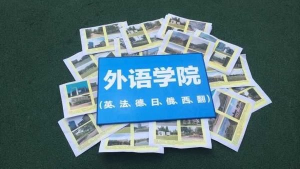 新生在活动开始前拿到一张图纸,每张图纸上印有四张校园不同地点的照片。活动要求新生们在校园中找到图片的对应景观并最大程度的还原原图。
