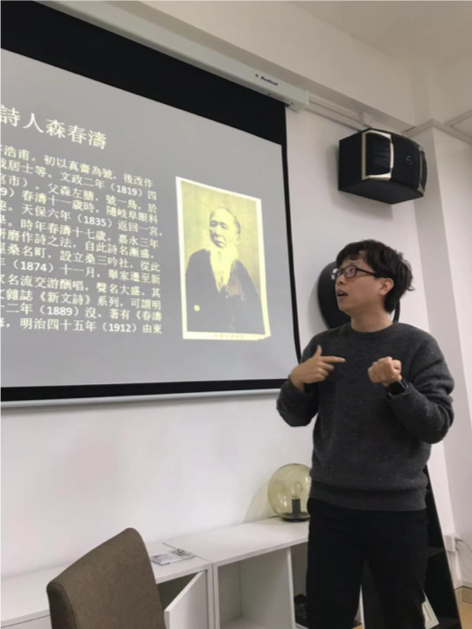 12月19日下午13:00, 永利yl23411青年学术联谊会在223阅览室举办了陈文佳老师作《森春涛的香奁诗受容与汉诗创作》读书交流会。本次读书会打破学术联谊会一贯选读译作的传统,首次邀请陈文佳老师来分享他这部专业性十分强的学术著作。日语系陈凌虹老师、杨敬老师、英语系陈贝贝老师、《外语教学理论与实践》编辑舒畅老师作为嘉宾出席,日语系十余位员工参加了本次读书会。