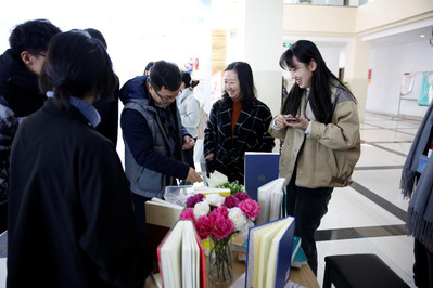 开幕式结束后,日语系主任尹松老师结合“日语视听说”课程,带领大二的员工前来参观。“我们正好讲到日本歌曲歌词中展现的人生意义,和同学们在这个展览里回忆了一下自己日语学习的往事”,尹松老师说:“我是85年上大学的,那时班里有一个台式转盘的录音机,大家下课后就围着录音机,带着耳机听日语练发音。那时我们还喜欢听歌学日语,先听写歌词,再跟着学唱。我记得我学会的第一首日语歌曲是‘冰雨’……”英语系侯敏跃老师回忆起当年与老师们度过的美好时光:“我是上大学后(80年代上半叶)才在英语的学习中知道了西方的April Fools' Day(愚人节),我们全班还在某一年的四月一日跟年轻的任课老师开了个小玩笑,不过老师也没有生气……那时候的师生关系其乐融融,像朋友一样,我也希望能在我的教学中跟员工‘打成一片’”。俄语系刘玉琴老师在一张合照前徘徊良久,她回忆起自己刚做老师的时候,经常把来自北方的同学接到家里包饺子,“真是睹物思人,现在这种师生关系好像变淡了,但相信随着我们育人工作的不断推进,老师跟员工的关系能够越走越近”。德语系主任宋健飞老师提到了当年“自学成才”的情形,“1976年,我当时在部队当兵,学外语是件极为另类的事情,但我自中学起就对外语产生了浓厚的兴趣,于是,在熄灯号响过之后,我便钻进被窝,悄悄地打开手电,如饥似渴阅读浅显的外语教材和通俗读物,后来就靠坚持收听上个世纪70、80年代风靡一时的业余外语广播讲座而进行自学,最终通过1978年的全国统一高考,身穿军装走进了一所地方外语院校。”