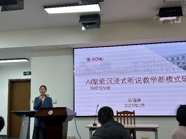 在会议中,八位教师依次分享了各自关于AI赋能大学英语教学的研究成果。王志宏首先介绍了“AI辅助文献综述协同写作”的研究,探讨了人工智能如何显著提升文献综述的写作效率与质量。随后,徐江聚焦于“大语言模型的通用学术英语读写教学研究”,通过案例分析法展示了AI工具在学术英语读写教育中的创新应用。