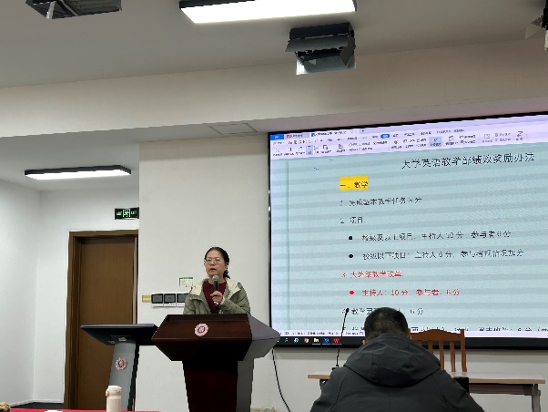 在春季学期开学准备会上,大学英语教学部副主任胡婧特别提醒教师们注意新学期的教学规范和缓补考安排。同时,大学英语教工党支部书记苏俊玲对新版“大学英语教学部绩效奖励办法”进行了详细解读,进一步明确了在教学、科研和社会服务工作中的激励机制,以提升大学英语教学部的整体工作水平。最后,大学英语教学部副主任周小勇对师范生英语教育改革项目做了介绍和工作部署。