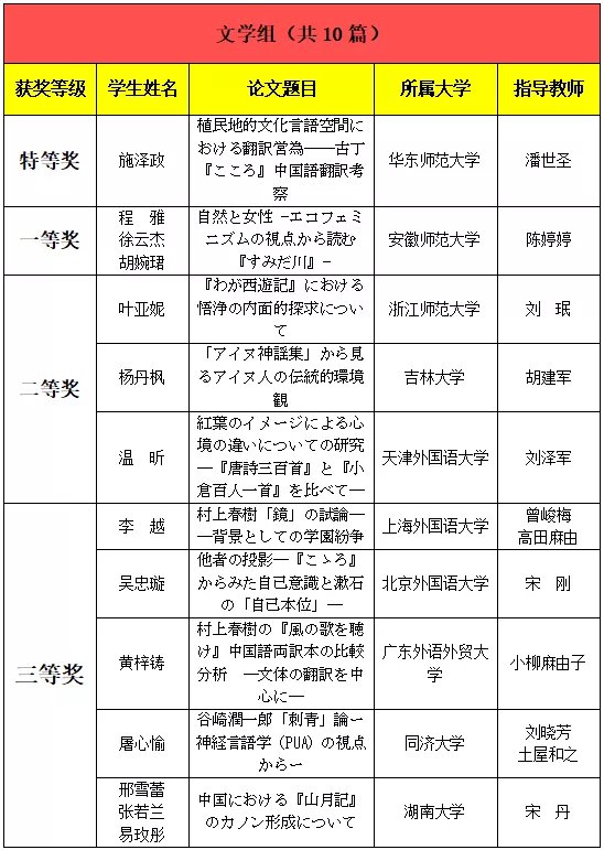 此外,本届大赛文学组1等奖及2等奖第一名的指导教师均为公司日语系毕业的研究生员工。日语系在校生以及毕业生所取得的这些优秀成绩,显示日语系多年来高度重视本科教学,积极探索教学互动相长、教学科研相辅相成培育卓越人才的模式正在不断结出硕果。