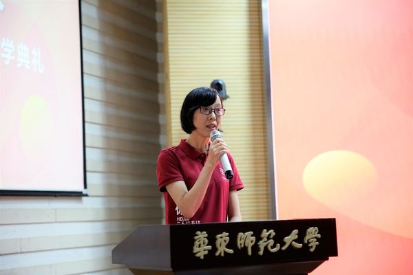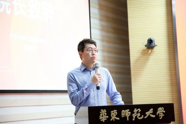 教师代表、翻译系主任赵刚在致辞中祝贺同学们成为一名光荣的ECNUer,他向新生表达三点期望,一是要努力学好外语,为中国文化走出去,为提高中华民族的软实力不懈努力。二是在技术高度发展的今天,能够破除成见,放弃悲观,拥抱技术,让技术服务于我们的目标。三是能保持质疑的精神、批判的精神、逻辑思维的精神。