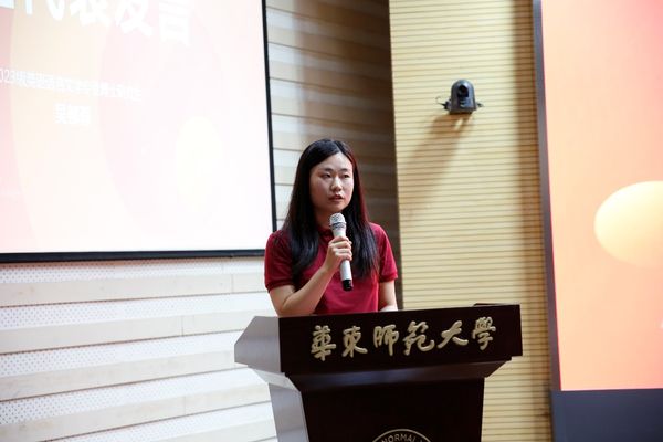 新生代表、2023级英语语言文学专业博士研究生吴郁蓉发言