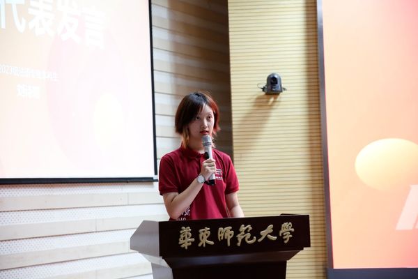 “海阔凭鱼跃,天高任鸟飞。”新生代表、2023级英语专业(优师专项)本科生彭琬乔在发言中表达了对“爱在华东师大”的切身感悟,表示在未来的老员工活中要不断塑造自主观念,成为一个自主的“生长者”,希望通过四年的学习,成为一位优秀的教师,为祖国教育事业贡献力量。