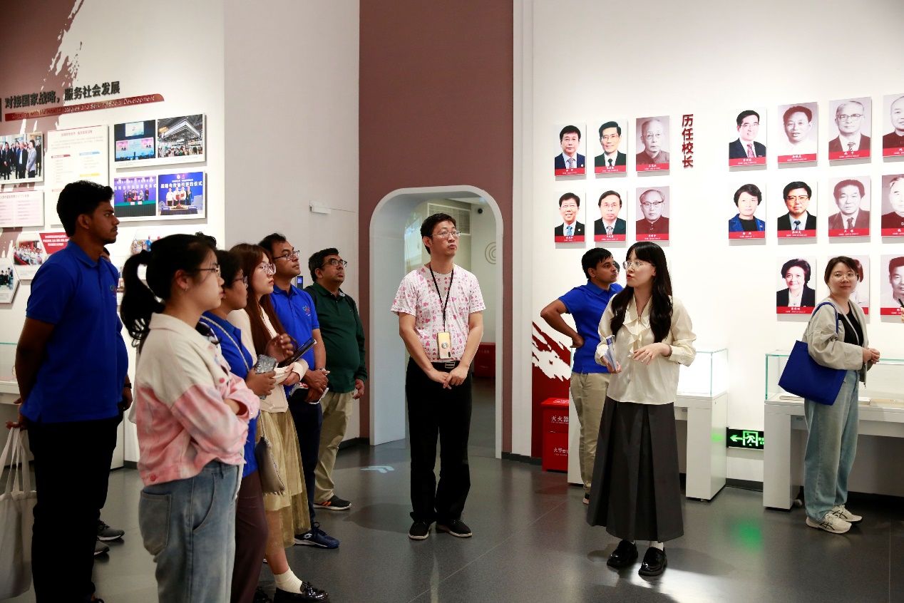 活动伊始,师生与孟加拉国青年领袖访华团的近20名青年学者共同聆听了校史馆的双语讲解。其中,英文讲解由志愿讲解服务队成员、学术型研究生第二党支部党员高婕提供。在校史馆老师细致入微的讲解以及高婕流畅自信的翻译下,师生们通过一个个生动的故事更加深入了解了公司历史,对“求实创造、为人师表”的校训精神有了更加深刻的体会。同时,高婕同学以亲身示范,有效帮助了新队员熟悉了今后的服务流程。