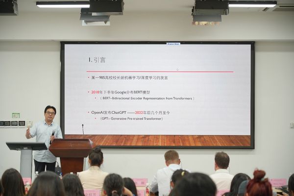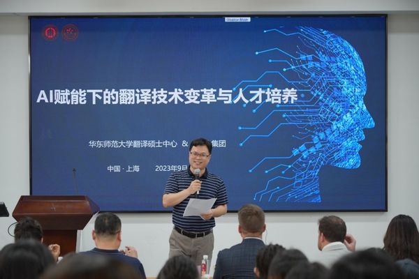 第四场学术报告是由上海交通大学管新潮教授带来“语言智能时代下的翻译技术再认知”。管新潮教授从技术介入翻译谈起,指出虽然我们未来所面对的世界是由软件构成和定义的,但翻译技术大语言模型(如人工智能)目前依然存在信息真假难辨等问题。由此延伸到翻译教学中,他提出翻译教学的顶层设计是翻译必须与人工智能等技术相结合,与翻译评价相结合。要完善翻译专业课程体系,打开思路,让更多的工具应用于翻译课堂中,特别注重加强语料库技术应用、数据分析、智能翻译等相关课程建设,致力于培养翻译技术发展的使用者、参与者和引领者。