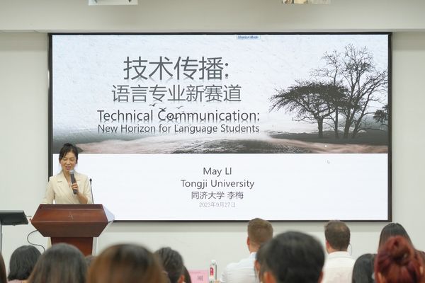 第三位报告人是同济大学李梅教授,她围绕“技术传播”的概念为语言专业学习者的发展提供了新的思路。李梅教授指出,传播的核心是“内容(content)”,翻译前必须先关注内容。她认为我们需要借助技术传播所写的内容,将专业信息技术以通俗易懂的语言传递给客户。“创译”意味着技术写作和翻译相结合,而人工智能无疑做到了这一点。面对外语员工在应聘时捉襟见肘的困惑,李梅教授提出语言与科技结合来应对就业挑战的可能性,同时她对在国内高校建立亟待完善的技术传播课程和新文科教育系统提出了展望。