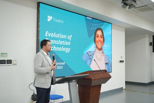 论坛第一场报告是Trados全球总裁Mark lawyer分享探讨“翻译行业的趋势和未来”,他借助数据调研重点探讨翻译行业的发展趋势,从产品、团队、管理等多维角度思考Trados对翻译未来的影响。他指出,在全球高要求和多任务的翻译背景下,翻译行业需要汲取时代的新型人才,寻求便捷技术的帮助,以实现智能高效的工作。Mark提到,在未来,Trados将继续聚焦安全、智能、高效的目标,与Open AI 展开语料库方面的合作,研发更多新项目,实现即时对话,进一步提升翻译生产力。