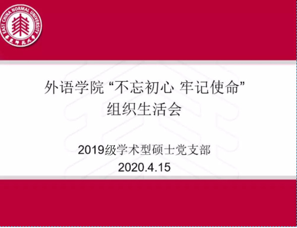 4月15日下午3点,党支部举办了“不忘初心,牢记使命”的组织生活会,会议在“腾讯会议”上召开,由支部成员郭利莹同学主持,支部18名师生党员参与。