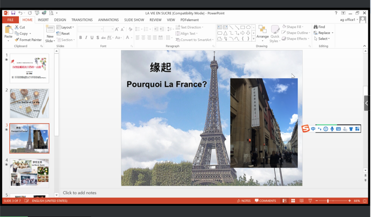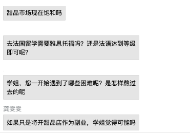 整个分享会主要分成四部分,第一部分是阮沁蓓关于求学进修的经验分享,这也是她的创业梦想起航阶段。刚进入华师大就学时,她便受到了外院师长的鼓励:要追求自己热爱的职业。在大三期间,她前往尼泊尔参加了义工工作,在那里她发现了自己对于甜点的热爱,为创业埋下了一颗种子。大四求职期间,她确定了自己想成为一名甜点师的职业规划,毅然决定继续学习深造。她搜集了许多甜点的资料,向行内的专家请教,并分析了自己作为一名外语学习者的优势,最终决定前往法国实现自己的甜点之梦。在法国的甜点公司,她接受了许多关于甜点的理论知识,也在指导者的带领之下进行了实习和实践。