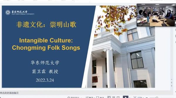 作为国家级非物质文化遗产的崇明山歌承载了大量地方文化信息,在对外翻译传播中极具挑战性。师生课题研究团队采用跨学科、跨部门的协同工作模式和田野调查及访谈等实证研究方法,对崇明山歌翻译实践和对外传播进行了初步的探索。演讲传播了中国最传统的崇明山歌民俗文化,受到两校六十余位在线同传师生的一致好评。