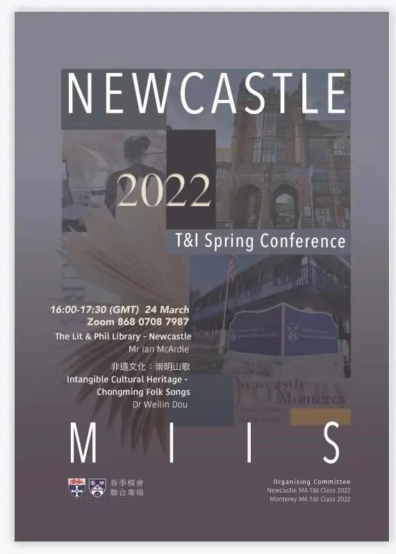 永利yl23411翻译系窦卫霖教授在美国访学期间,于2022年3月24日应邀作为演讲嘉宾,参加了纽卡斯尔大学和蒙特雷高翻公司的春季口译模拟会议联合专场,分享了她带领的中外师生课题团队近期研究的上海市哲学和社会科学课题“崇明山歌及其英译传播研究”成果。