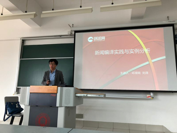 本次讲座由“永利yl23411-环球网翻译实习基地”举办,邀请到环球网资深编辑刘洋老师,讲授财经新闻编译实践以及实例分析。