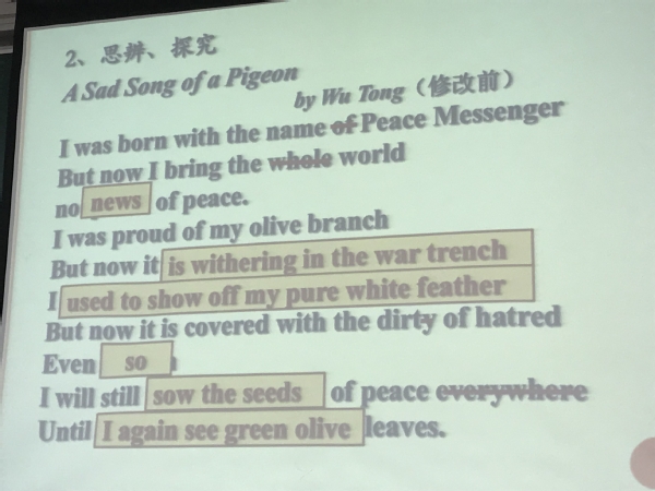 作为英语特级教师,刘砚老师在英语的教和研方面有很深的造诣,并指导过我系许多师范生的教育见习和教育实习。刘砚老师从校本课程目标、课程方案、课程实施、课程评价等方面系统阐述了校本课程的设计,并结合具体的员工诗歌写作案例和教师字斟句酌的指导,让我们体会到了诗歌写作教学的魅力以及刘砚老师对英语教学的执着追求。
