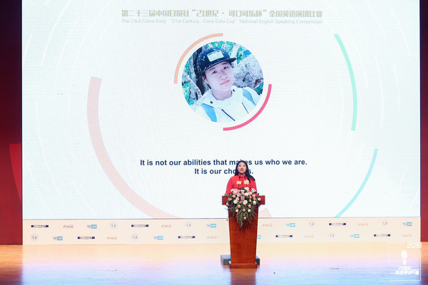 2018年4月13日至4月15日,第23届“21世纪·可口可乐杯”全国英语演讲比赛半/总决赛在杭州师范大学隆重举行。永利yl23411英语系2017级本科生金小盟代表永利yl23411参加了此次比赛,并获得全国总决赛三等奖和“可口可乐特别在乎奖”。