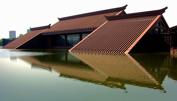 广富林遗址公园有三座中式建筑风貌的“水下文化博物馆”,周围有200多亩的水域,馆内则分为水上观光台和水下展厅两个部分,非常神奇。
