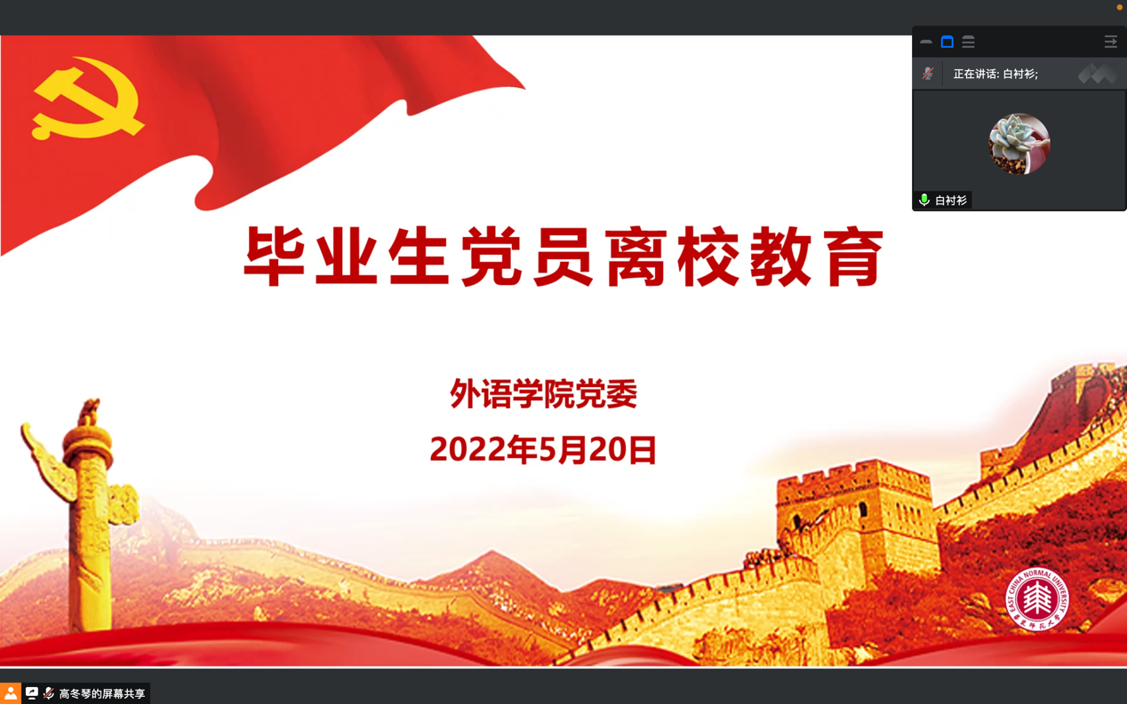 为进一步加强党员教育和管理,引导广大毕业生党员在新的岗位上继续发挥先锋模范作用,5月20日,公司党委于线上组织开展2022届毕业生党员离校教育,学术型研究生第三党支部和专业型研究生第二党支部全体毕业生党员参加学习。会议由公司党委副书记兼副经理江宇靖主持。